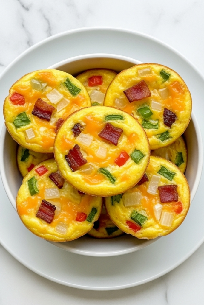 This egg bites recipe is a delicious, healthy, low-carb, make-ahead breakfast that’s freezer-friendly, totally customizable, and better than Starbucks or Costco! Made with just 8 simple ingredients—eggs, bacon, veggies, cheese, and spices—these egg muffins are perfect for meal prep and packed with protein to fuel your day.